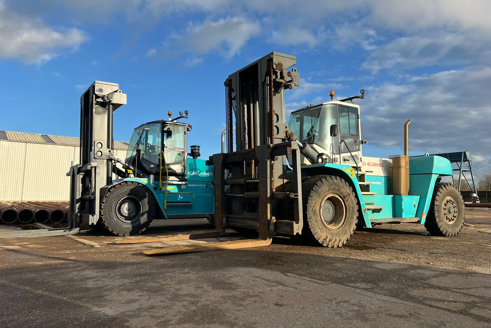 Na tien jaar was het tijd voor vervanging. 2 december was het eindelijk zover, de levering van de nieuwe heftruck. De oude 28 ton Konecranes is vervangen door een 25 ton variant. Een mooie aanwinst voor Herstaco! Ondanks dat de nieuwe heftruck iets kleiner is, tilt deze bijna hetzelfde gewicht als de oude.